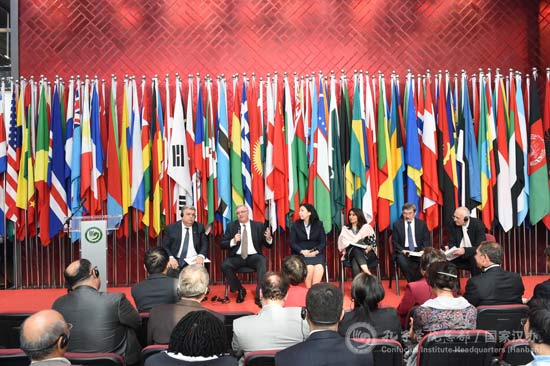 欢迎仪式后,在孔子学院总部高级顾问阿克曼主持的主题论坛上,阿塞拜疆、格鲁吉亚、吉尔吉斯斯坦、乌兹别克斯坦、巴基斯坦5国驻华大使就“多元文化在丝路”主题进行了深入研讨。著名学者——中国人民大学国际关系学院外交学系教授王义桅主持了由德国波恩大学教授、著名汉学家廉亚明、保加利亚大特尔诺沃大学孔子学院外方院长Mandova Iskra、新汉学计划埃及博士生阿睦迩等学者参与的“丝绸之路与中国形象”学术沙龙。同步举办的“朝圣之路?圣迹——从敦煌到伊比利亚半岛”艺术展览、全球孔子学院巡礼展、国际汉语教学资源展、中国文化体验中心、“丝路同歌”留学生联欢会、中医体验、中华美食体验等活动让中外嘉宾深入了解了孔子学院,感受了中华文化之美。