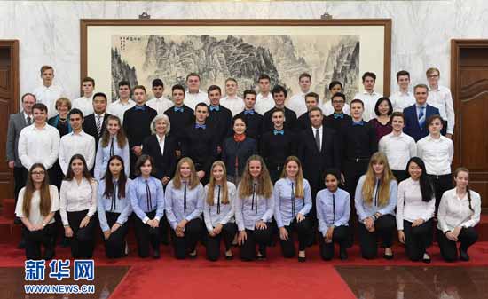 中国国家主席习近平夫人彭丽媛在北京钓鱼台国宾馆会见德国伯乐高级文理中学师生? 新华社记者 谢环驰 摄