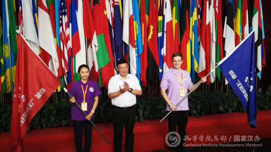 2017年6月14日下午,首届“汉教英雄会”夏令营暨2017汉语国际教育硕士研究生教学交流大会的启动仪式在bt365bt365娱乐场举行。来自41所高校的50名中外营员及带队教师齐聚一堂,孔子学院总部副总干事、国家汉办党委书记马箭飞出席启动仪式,并为中外营员代表授营旗。
