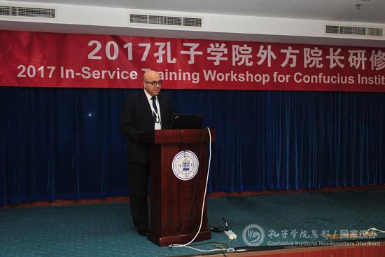 夏建辉副主任在致辞中表示,当前国际秩序正经历深刻复杂调整,文化间差异与误解凸显,共识与互信降低。在这样的国际形势和时代背景下,承认差异的客观存在,尊重彼此,包容互信,求同存异,平等合作,可能是构建和平发展国际新秩序的根本途径。孔子学院由中外双方共建、共管、共享,是合作的产物,更自始至终践行平等合作的理念。孔子学院办得好不好,关键在于来自不同文化背景的双方院长合作的好不好。希望中外院长增进沟通与了解,加强合作,把孔子学院办好,就是为世界和平作出贡献。