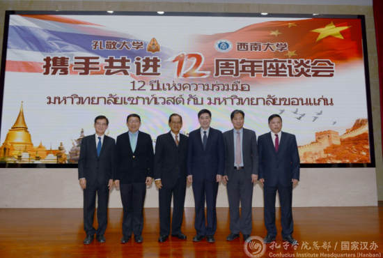 西南大学与泰国孔敬大学于2006年缔结校际关系,12年来两校依托孔子学院,密切携手、倾力协作。孔敬大学孔子学院的发展,也促进了两校校际间的交流与合作。此次泰国孔敬大学理事会全体成员49人赴西南大学交流并共商孔子学院发展及两校进一步合作,在两校国际合作交流史上乃至中泰两国高层次人文互访史上都实属难得。两校校际关系的缔结和发展得到了中泰两国政府、社会各界、学校领导的高度重视和支持,成为高校交流、两国人民友好交往的典范。