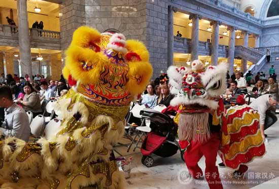 答谢会上,犹他大学孔院下设卡尔文史密斯小学孔子课堂的学生们带来了喜庆的舞狮表演,美国乐团组合“Matteo”和美国舞蹈团体“Center Stage Dance Troupe”也分别献上了精彩的中国民乐演奏和舞蹈表演。