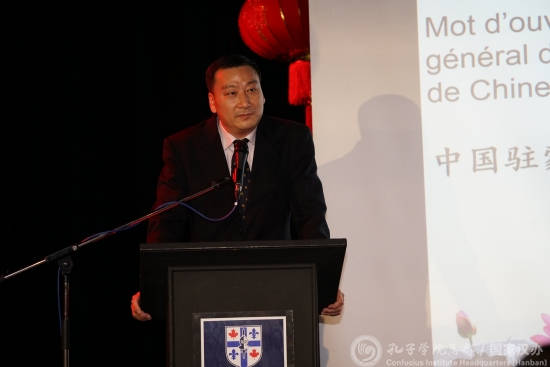 “魁北克有着较长的中文教学历史和优良传统,有一批高素质、懂教育的中文教师队伍,培养了大批优秀学生。在往届“汉语桥”世界中学生中文比赛中,魁北克赛区的选手都取得了良好成绩。祝各位选手在今天的比赛中发挥出色,赛出水平,并预祝你们在总决赛中再创佳绩。”