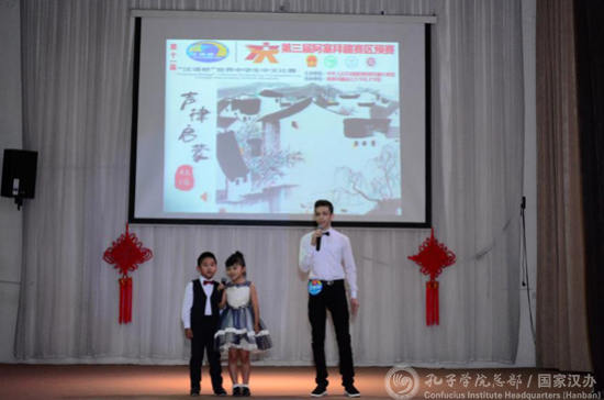 6月9日,由中国驻阿塞拜疆大使馆主办、阿塞拜疆语言大学孔子学院承办的第十一届“汉语桥”世界中学生中文比赛暨阿塞拜疆赛区预选赛决赛在阿塞拜疆语言大学举行。阿塞拜疆语言大学副校长扎莱·盖丽波娃、阿塞拜疆国立文化艺术大学艺术系主任谢维尔·克里莫娃、中国驻阿塞拜疆大使馆行政领事处主任孙福忠出席比赛并致辞。