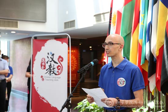 艾墨本一来到北京就感受到这座城市和人民的热情。他想说“首先我们都是未来的汉语教师,都是朋友,其次才是参赛选手。但作选手是暂时的,做朋友是一辈子的”。“什么是老师的魅力?如何讲课讲得实用而有趣?如何让学生获得成就感?”是他一直思考的问题。他希望“通过汉教英雄会这个平台,与大家多多交流,共同探讨,共同进步”,“我会带着在北京、在中国感受到和学习到的中国文化、中国历史和中国魅力回美国,向美国人、向世界展现中国的精彩”。他对老师的指导与朋友的陪伴表示感谢,“汉办、老师、朋友们请收下我的膝盖”。