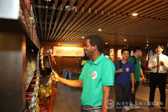 选手参观中国文化体验中心体验中国编钟