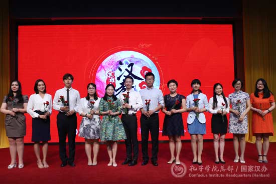 “道阻且长,行则将至。”在导师见面会上,十二名来自于合作院校的专职教师分别以“我的汉教梦”为主题演讲,与参赛选手们分享了汉教追梦之路上的风景与汗水。来自北京外国语大学的杜红梅老师说道,孔子学院为汉语教师提供了广阔的平台,使她在实践中反思教学理论,在教学中获得个人成长,由一名汉语教师成长为一位合格的汉语考试官。复旦大学的谢芳芳老师动情地回忆了自己的汉教之路,她说汉教之路既有眼泪,也有鲜花,是汉教事业让她收获了人生最宝贵的财富。对外经济贸易大学的李可老师与选手们分享了汉语教师的教学活动与海外汉语教师的日常,引发了选手们的共鸣。南开大学的马新新老师和东北财经大学的张笛老师也用风趣而又不失水准的演讲与选手们分享了在海外的教学经验,丰富的图片吸引了选手们的目光。大连外国语大学李艳艳老师也讲到,时代赋予汉语教师们迎接挑战的任务,她期待在汉教之路上与大家一起奔跑。第一届“汉教英雄会”冠军、北京语言大学的孙悦然也上台与参赛选手分享了参赛经验与教学活动感受。导师见面会活动气氛热烈,导师们的精彩演讲赢得了阵阵掌声。演讲后,现场进行了火爆的互选环节,选手们用自己的歌声向导师们表明了诚意,并纷纷把康乃馨赠送给了心怡的导师;导师们则根据所收到的鲜花数量,先后选择了选手组队。最后,现场由参赛选手和导师共同组成了十二组参赛队伍,一起完成接下来的比赛环节。