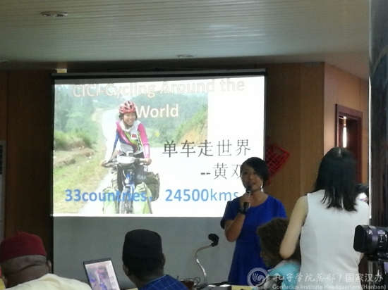 研讨会还特别邀请了“单车走世界”的中国姑娘黄双分享骑单车游历33国的传奇经历,分享了她的“同一个世界,同一个家园”的美好心愿。