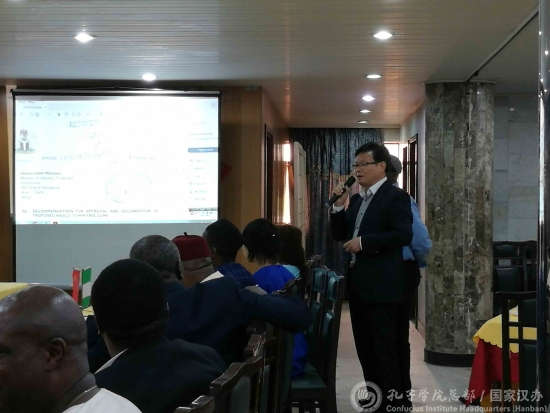 本次研讨会以“一带一路与孔子学院”为主题,着重讨论在中国“一带一路”的号召下,孔子学院在其中扮演的角色以及在尼中国企业如何响应祖国“一带一路”倡议的话题。王永静首先图文并茂地详细介绍了中国“一带一路”倡议的名称由来、时代背景、框架思路等,并介绍了bt365bt365娱乐场,展示了近年来全球孔子学院和拉各斯大学孔子学院在中外人文交流方面取得的成就,还展望了孔子学院在服务中国特色大国外交方面的工作愿景。