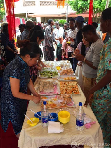活动中,孔院教师准备了武术表演、扬琴、古筝、腰鼓、油伞舞等节目,精彩的表演让前来参加毕业典礼的家长和学生们赞不绝口。中国美食体验展台前,琳琅满目的中国美食让当地民众流连忘返。