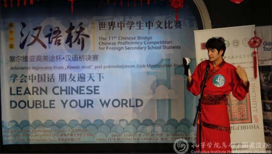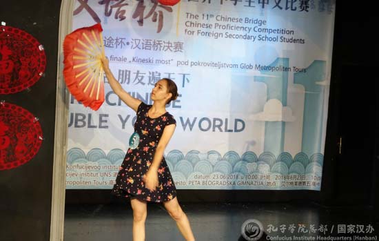 当地时间6月23日,第十一届“汉语桥”世界中学生中文比赛暨塞尔维亚“高美途”杯中文比赛在贝尔格莱德第五高中圆满落幕。来自塞尔维亚全国各地的普通高中、语言高中、医学高中等11所学校的26名选手参赛。
