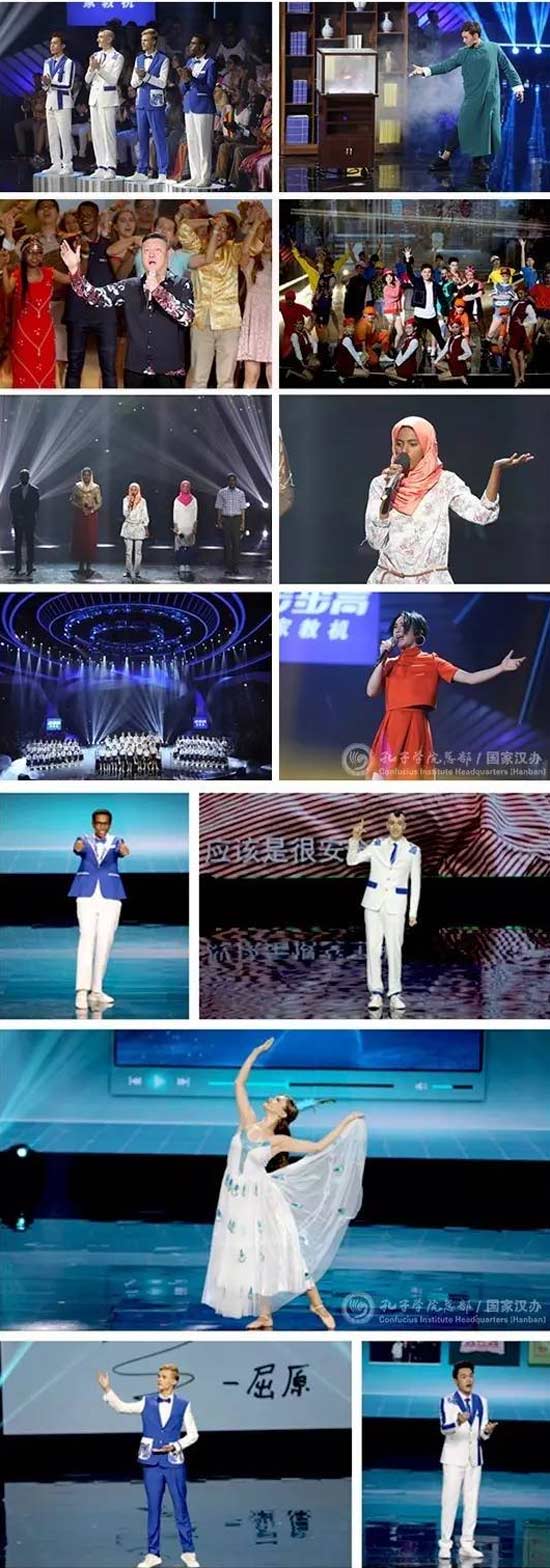 比赛共分为三个环节:“我的汉语朋友圈”互动演讲赛、创意魔术竞答赛和巅峰对决赛。在“我的朋友圈”演讲比赛环节,马来西亚选手沙米尔分享了外祖父热爱中国文化和情深意切的家庭故事,令全场观众为之深深动容;美国小伙穆宸鹏化身“养生专家”,分享他的中医养生经验和酸爽的针灸经历;德国选手何本德为我们讲述诗歌作红娘,让他和一位热爱中国古典文学的姑娘结识并相爱的经历;澳大利亚姑娘刘思远的孔雀舞优美灵动,立志要成为“澳洲杨丽萍”,让澳大利亚人听到最美的中国声音,看到最美的中国舞蹈;苏丹选手赵之行从中国曲艺中收获快乐,要成为一个积极向上、为他人制造快乐的人。