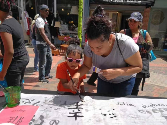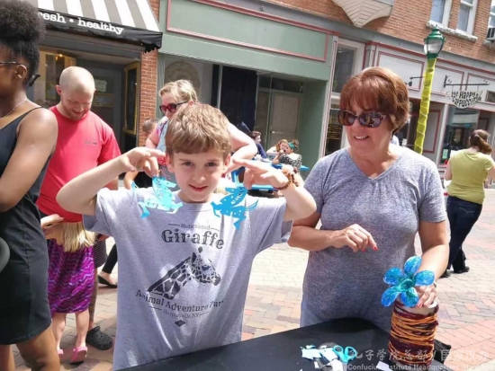当地时间6月2日,美国纽约州立奥尔巴尼大学孔子学院应邀参加斯克内克塔迪市一年一度的儿童文化节,为当地的孩子们带来了书法、剪纸等中国传统文化体验活动。