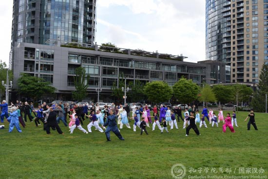 一百多位表演者和观众共同参与8式太极拳表演