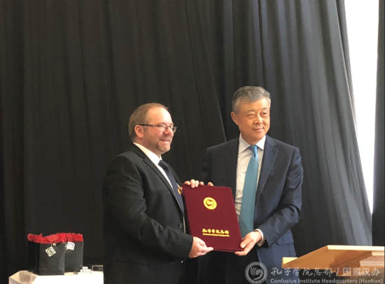 贝尔在致辞中表示,将一如既往地支持孔子课堂的建设和发展,努力把设得兰的两所孔子课堂建设成为当地汉语和文化学习基地,通过汉语教学和中国文化活动更好地为学生和居民搭建了解中国的平台。