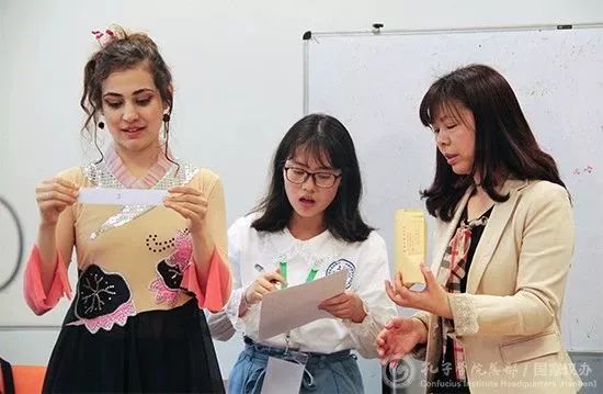 在模拟教学环节,如何让外国汉语学习者理解“或者”、“一边……一边……”、“有点儿”等句式,让选手们颇费了一番脑筋。大赛现场还有6位来自不同国家的中级水平学生作为模拟教学对象,配合各位选手进行教学展示。