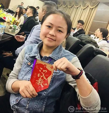 何浩德:我第一次参加这么重要的比赛就拿了一等奖,真是高兴极了!很多老师和同学都夸我汉语说得好,可是在准备比赛的过程中,我才真切地发现原来我需要学习的汉语知识还有很多。知识问答环节,有一道题目是:“中国四大名著是什么?”这个我知道,但当时激动地竟然差一点没回答出来。后来就放松了很多,特别是现场给学生讲“比”字句的时候,我觉得自己就是一名优秀的汉语老师!当我唱起“我深深地爱着你,这片多情的土地……”这首歌的时候,看到评委们赞许和鼓励的眼光,就更加坚定了我要做好汉语教师的决心和信心。