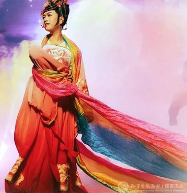王柯然:面向多语种的留学生,把“汉语”讲明白真的是一件不容易的事情,而把“汉语”讲的有趣就更不容易了。所以,作为一名优秀的国际汉语老师必须具备扎实的汉语语法功底、丰厚的汉语文化知识、适恰的汉语教学方法,通过这次比赛,我真的看到了很多,学到了很多。通过上午的竞争,10位选手进入最后的晋级赛,我抽到的是10号签,心中有点小庆幸,因为我觉得我表演的才艺适合最后一个上场。当我顶着“大唐贵妃”的反串造型上台时,一抬头真的发现“满座宾客无不伸颈、侧目、微笑、默叹,以为妙绝。”赛后真的感叹:“台上三分钟,台下十年功”,要想成为一名优秀的国际汉语教师亦是如此。