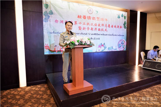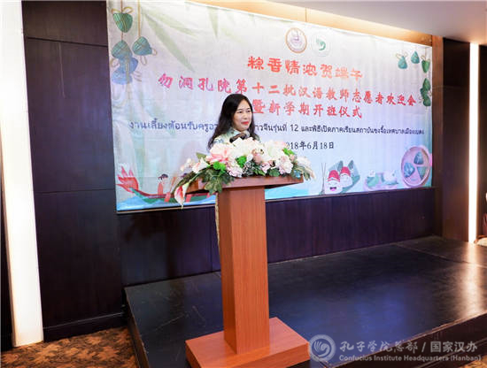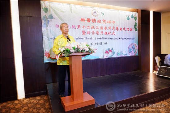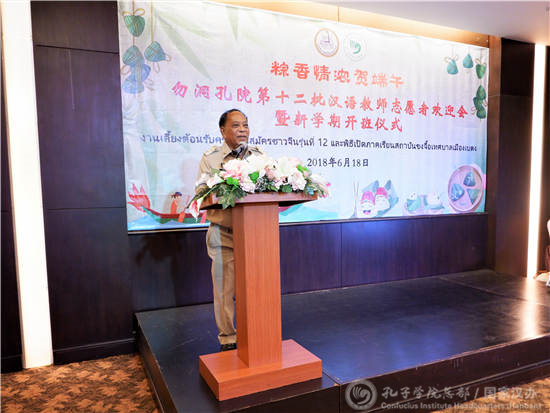 6月18日,勿洞市孔子学院在文华酒店举办第十二批志愿者欢迎会暨新学期开班仪式。勿洞县长淡隆·狄萨库(Dumrong Deesakul)、勿洞市市长容志江(Somyot Pharmacist)、勿洞慈善堂理事长陈镇东(Damrong Chantasriviroj)、勿洞市孔子学院理事拿督斯理周昌江(Serm Juthamongkhon )、勿洞孔院中方院长陈文以及市政局领导、各会馆理事长、各合作学校校长、孔子学院全体教师、新老学员代表等百余人出席此次活动。