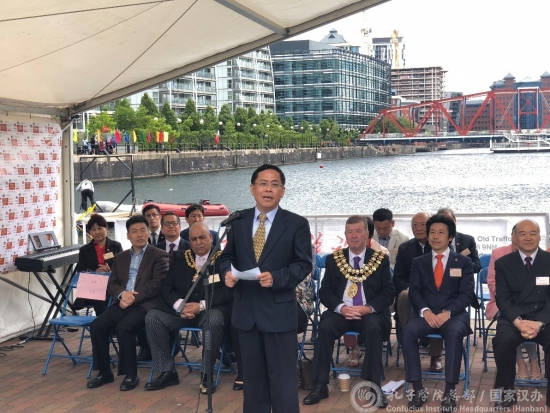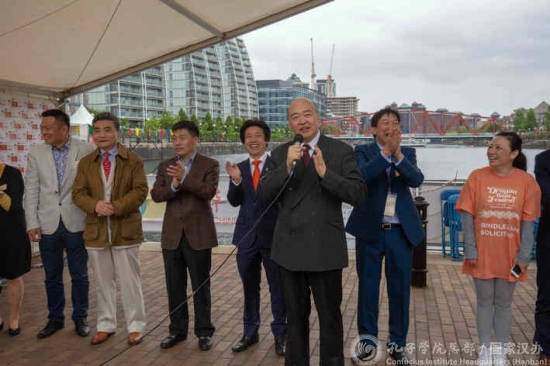 兰卡斯特大学孔子学院中方院长刘洊波作为孔子学院院长代表在开幕式上发言。他介绍了龙舟赛所代表的“活力、友好、竞争、合作”的精神,为当地民众普及中国绵延数千年的端午节文化,表达了对中英友好、共同发展的美好祝愿。