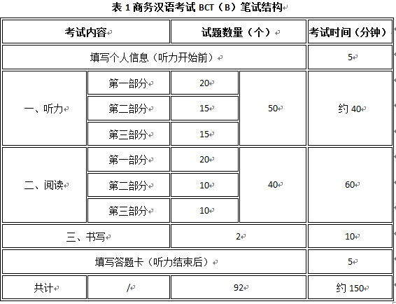商务汉语考试BCT(B)笔试试卷共92题,分听力、阅读、写作三部分。