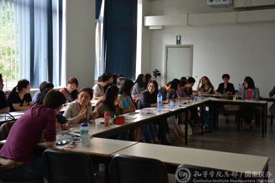 培训期间,北京语言大学资深对外汉语专家张浩和华东师范大学国际汉语文化学院副院长兼国际汉语教师研修基地副主任丁安琪为参加培训的本土汉语教师做了“汉语语法教学的理念与模式”“汉语语音教学的理念和模式”“汉语常用句式的展示与操练”“课堂活动设计的理念与模式”“如何激发学习者汉语学习动机”和“国际汉语词汇教学”等六个专题的讲座。为了帮助本土汉语教师更好地掌握汉语教学方法和提高汉语教学水平,此次培训增加了“教学研讨”,中外本土汉语教师在两位专家的组织下就教学中遇到的问题积极研讨,交流经验。此外,比利时本土汉语教师马伊曼、安妮卡、安娜琳还与大家分享了他们在汉语语音学习和教学中的经验,研讨现场非常热烈。